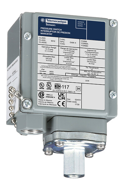 9012GCWM4 - Pressure switch 9012G, adjustable scale - Telemecanique - Pressure switch 9012G, adjustable scale, 2 thresholds, 270 to 9000 PSIG - Telemecanique - 0